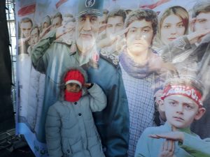 با تصویر سردار شهید قاسم سلیمانی، عکس میگرفتند تا همراهیشان را با سردار برای یاری دین نشان دهند.